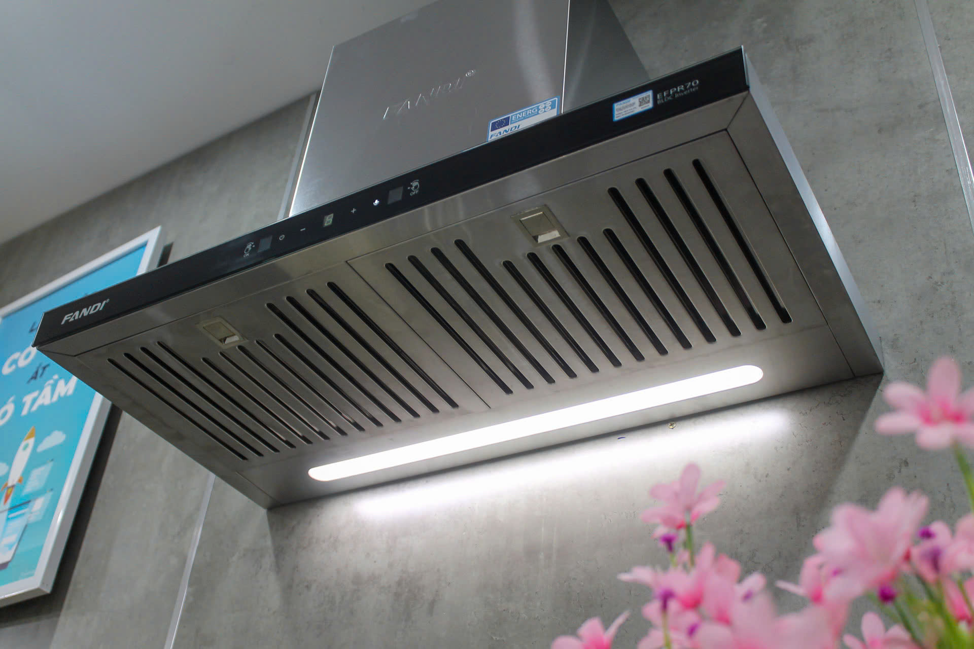 Máy hút mùi Fandi EFPR70/90 cho khả năng chiếu sáng tập trung với đèn led dạng thanh Line Lighting. Ánh sáng phân bổ đều tại khu vực nấu, căn bếp trở nên lung linh hơn bao giờ hết.